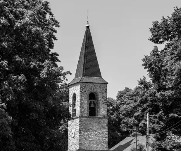 • Son clocher unique en forme de dôme, abritant deux cloches et une troisième fixée à l’extérieur, à l’extrémité du clocher.